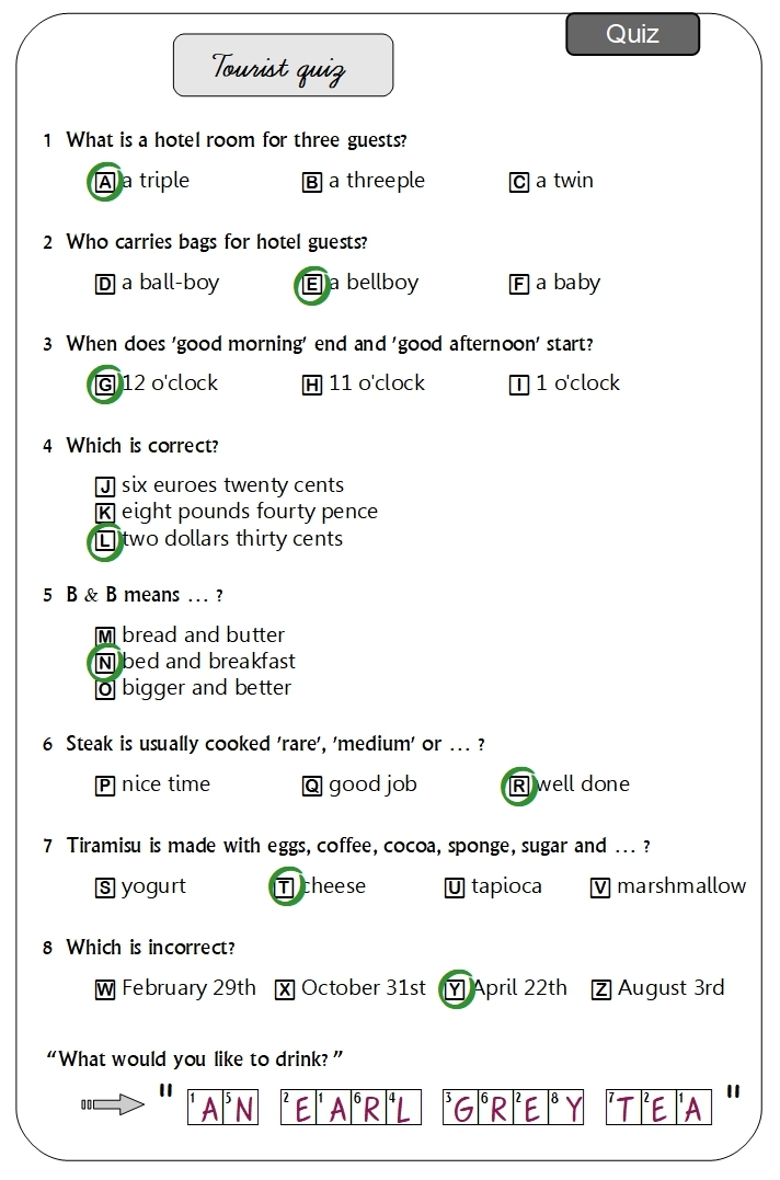 These are example answers. Other answers are sometimes possible; please use discretion.