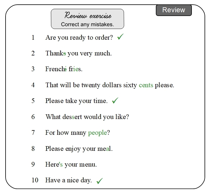 These are example answers. Other answers are sometimes possible; please use discretion.
