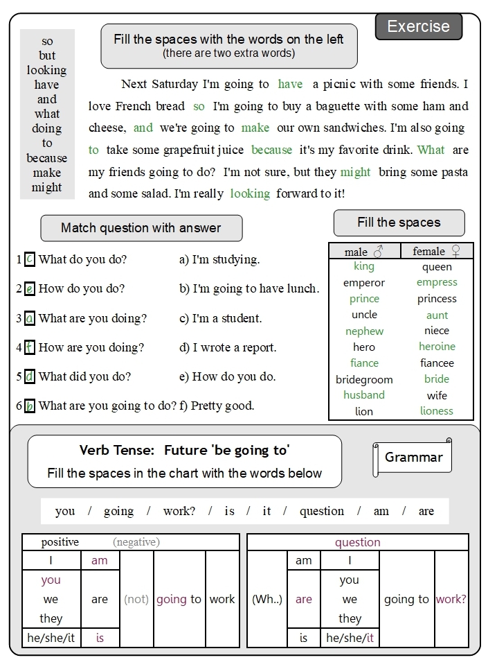 These are example answers. Other answers are sometimes possible; please use discretion.