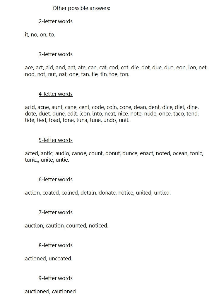 These are example answers. Other answers are sometimes possible; please use discretion.