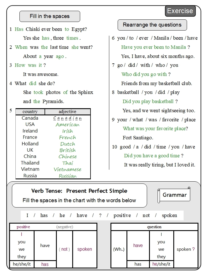 These are example answers. Other answers are sometimes possible; please use discretion.
