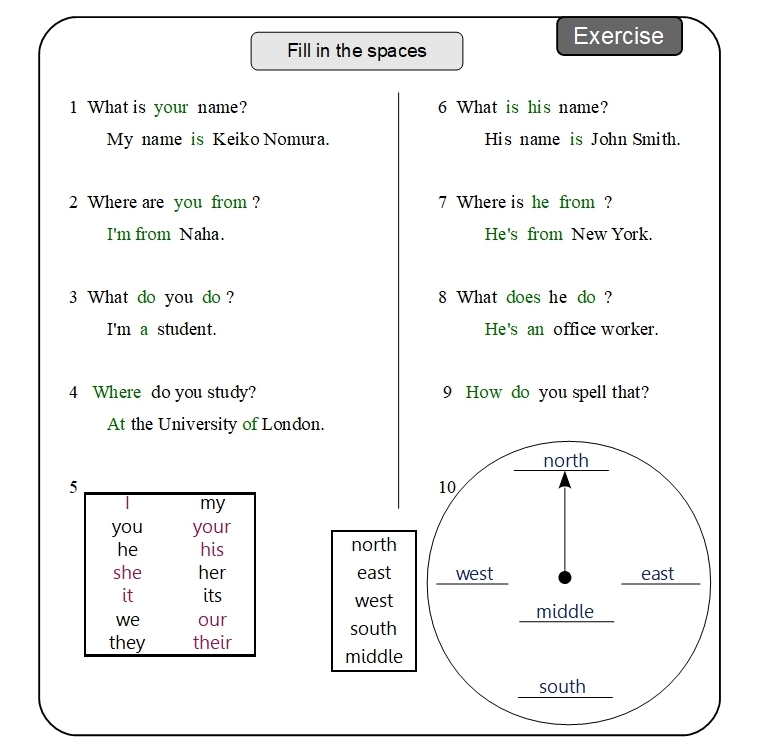 These are example answers. Other answers are sometimes possible; please use discretion.