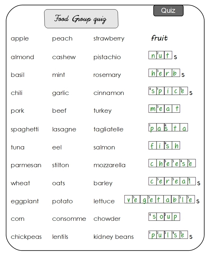 These are example answers. Other answers are sometimes possible; please use discretion.
