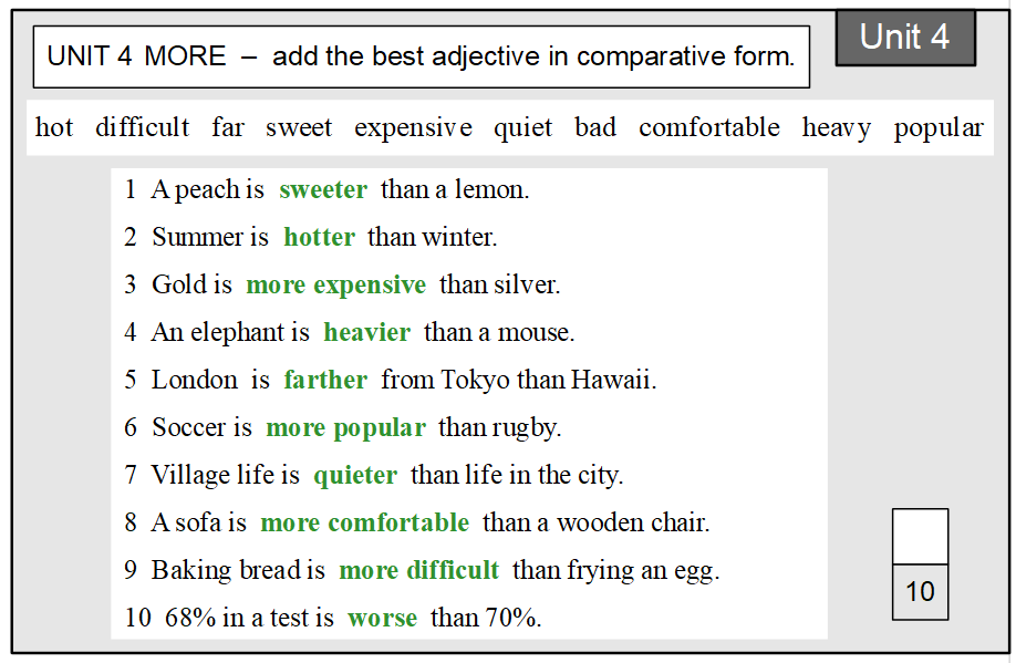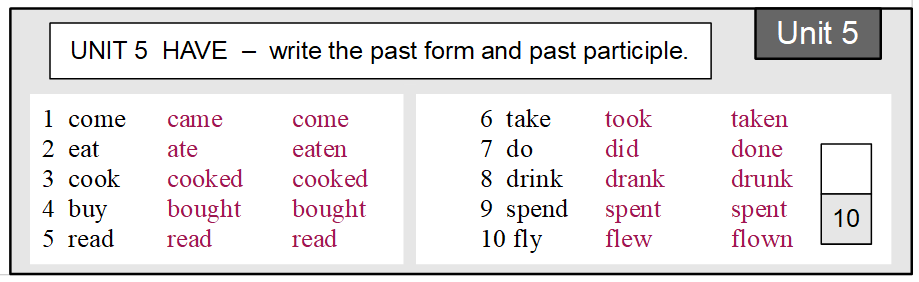 These are example answers. Other answers are sometimes possible; please use discretion.