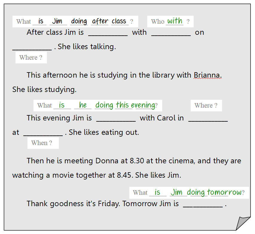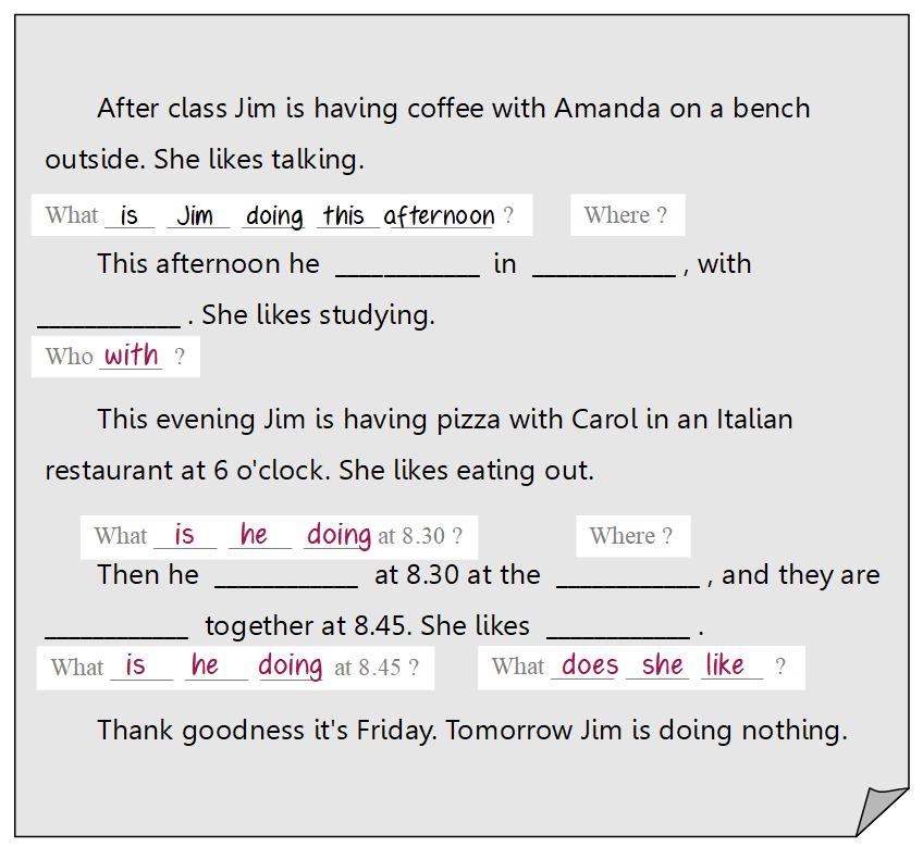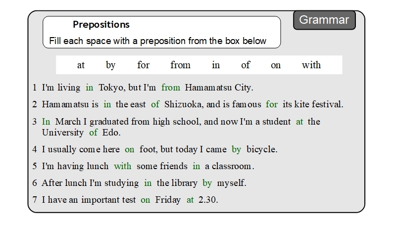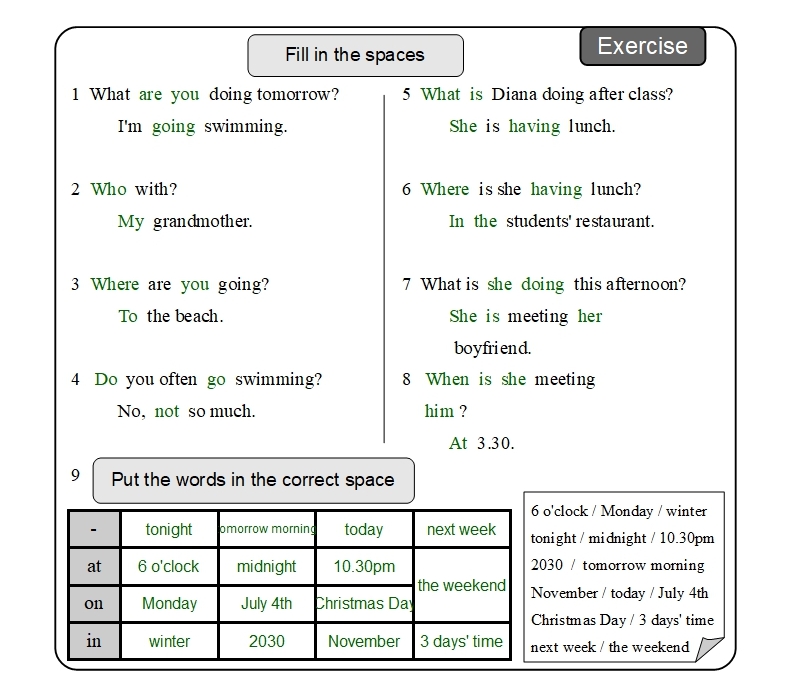 These are example answers. Other answers are sometimes possible; please use discretion.