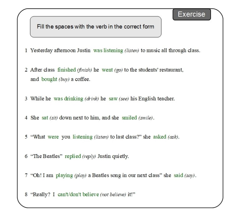 These are example answers. Other answers are sometimes possible; please use discretion.