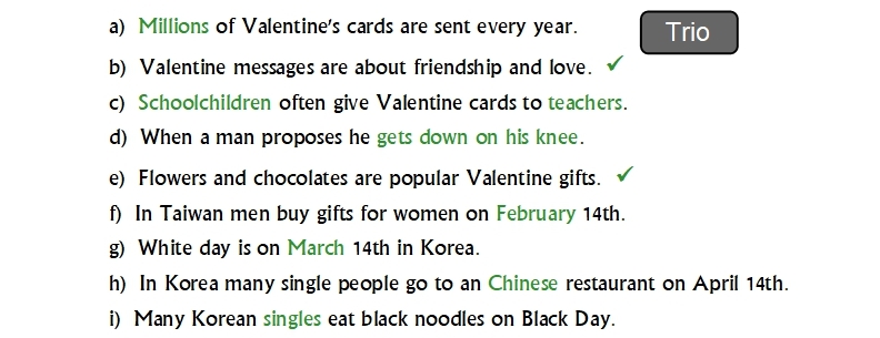 Warm-up answerTrio answerUnit 2 Puzzle answerCrescent Moon, with VenusBelgian chocolatesDovesPink diamond engagement ringSix red rosesCupid, with bow and arrowHeart
